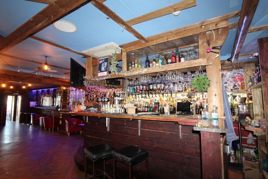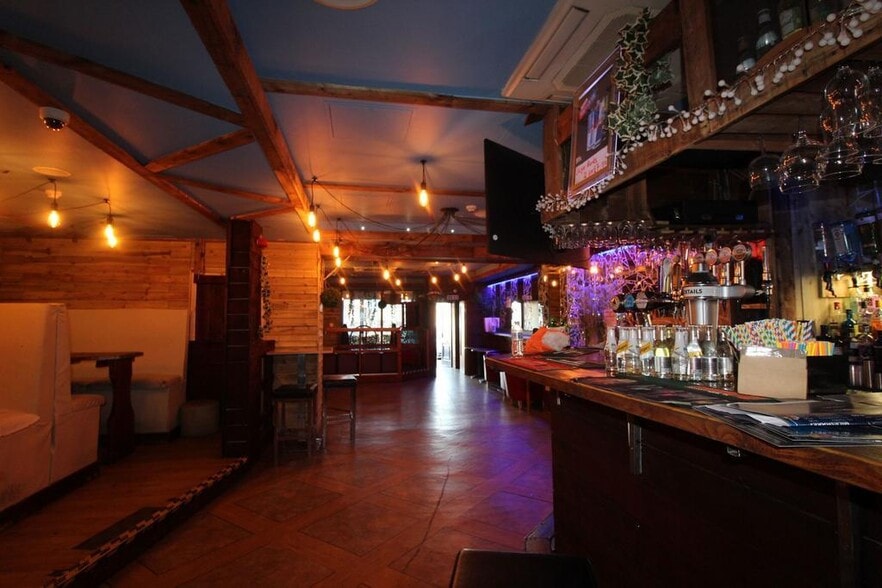 The property is currently operating as a bar/restaurant with linoleum flooring and wooden accents