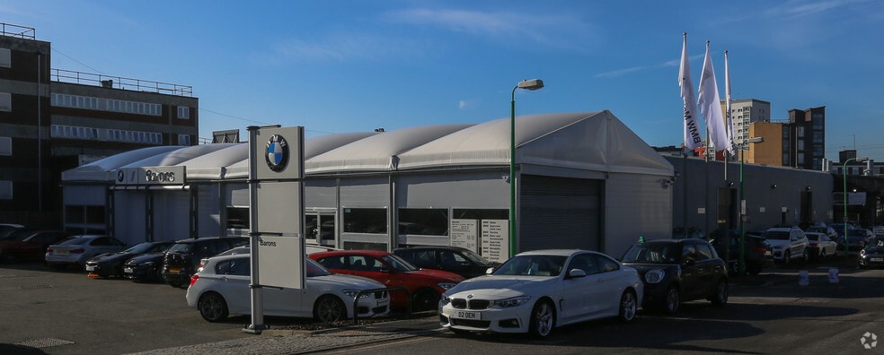A rectangular-shaped steel portal frame building, until recently used as a BMW and MINI service centre. The property is predominantly single storey, with a service centre to its eastern end (with a minimum eaves height of 4.2m) and a workshop to the eastern end (with a minimum eaves height of 5.0m). The central area of the building is predominantly two-storey, with a glazed showroom to the front and a range of offices, amenity and storage areas to the remainder. The property is clad in profile metal and features a dual-pitched roof with inset rooflights and vents. Externally, there is a large car park to the eastern end, finished to tarmacadam, some additional spaces to the front of the building and a self-contained yard to the western end which also accommodates a small dual-bay valet building. We estimate there to be capacity for more than 100 vehicles in total. The site coverage is in the order of 50%. There are presently workshop ramps and various furnishings in situ which can be removed if not required by the tenant. Equally, much of the central office and storage functions can be altered or removed should a tenant require additional warehouse / workshop space.
