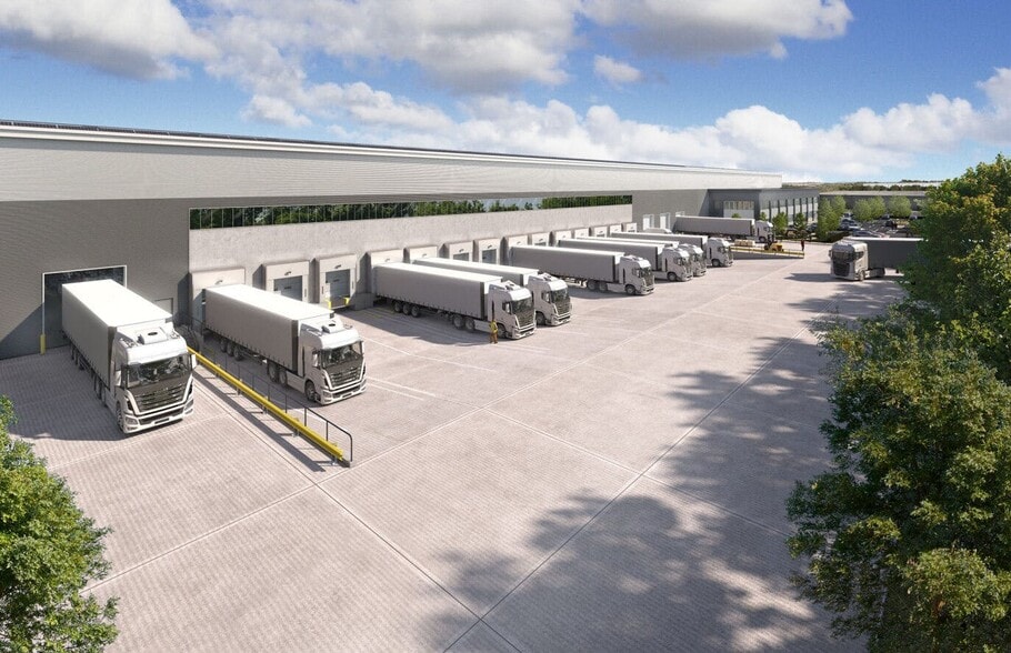 Grade A logistics building adjacent to the M1 motorway, targeting Net Zero Carbon and BREEAM Excellent. Available Q2 2025.