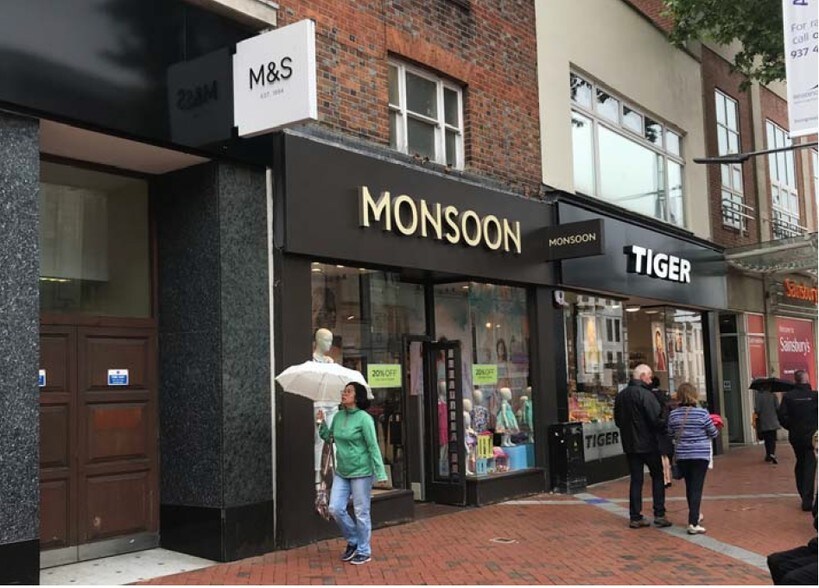 The unit is in between Marks & Spencer and Tiger. Other nearby retailers include Pret A Manger, Costa Coffee and Patisserie Valerie as well as Fat Face and Ecco Shoes.