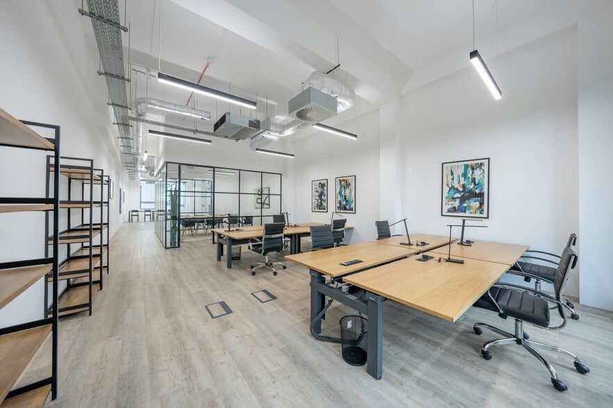 The property comprises a three storey building of masonry construction containing high spec refurbished offices available for a tenant seeking a well located and airy space with good natural light in the heart of one of London's most vibrant neighbourhoods. Total space is 6,981 sq.ft. set out over the 1st and 2nd floors with ceilings approximately 4m high. Refurbished to a CAT A standard with exposed raised flooring, AC and Air Flow system, and exposed raised flooring. Office units come with comfortable modern desk chairs and good in-room storage and kitchenette facilities. 1st floor is CAT A+ standard which is ready for client occupation.