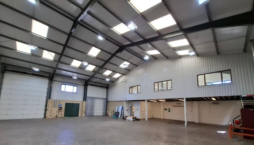 The premises comprise an end terrace building of steel portal frame construction with part brickwork and clad elevations, beneath a pitched plastic coated steel sheet insulated roof incorporating translucent light panels. The construction provides an internal height of approximately 5.6 metres at the frame haunch. Two pedestrian entrance doors within the front elevation provides access to ground floor reception, office, WCs and kitchenette. The first floor mezzanine comprises open plan space which may be suitable for storage/ office use. Vehicular access is by way of two sectional overhead loading doors. Car parking and loading is provided to the front of the property. The property is situated within the popular Coln Park, forming part of Andoversford Industrial Estate approximately 7 miles to the east of Cheltenham.