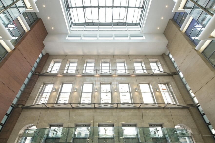 123 St Vincent Street is an iconic 9 storey office building, redeveloped behind a fully glazed facade, with large 15,000 sq ft floor plates. The building occupies a 100% prime position in the heart of Glasgow’s CBD area, situated on the south side of St Vincent Street at its junction with Hope Street. The street also dissects Buchanan Street, Glasgow’s primary retail street. Public transport is excellent with both Glasgow Central, and Queen Street railway stations, Buchanan Street Subway and Buchanan Bus Station all situated within a few minutes’ walk.