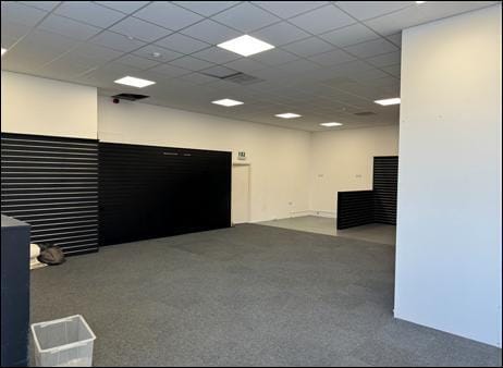 The subjects form part of a modern retail development which has been split to form two retail units. The subjects are contained within a larger site allowing for 18 car parking spaces. The subjects benefit from a modern glazed display frontage onto Fenwick Road, with a large fascia trade signage above. Internally, the subjects are fit out in line with the previous tenants use as a footwear retailer forming a main sales area to the front, followed by two changing rooms, w/c facilities and a stockroom to the rear.