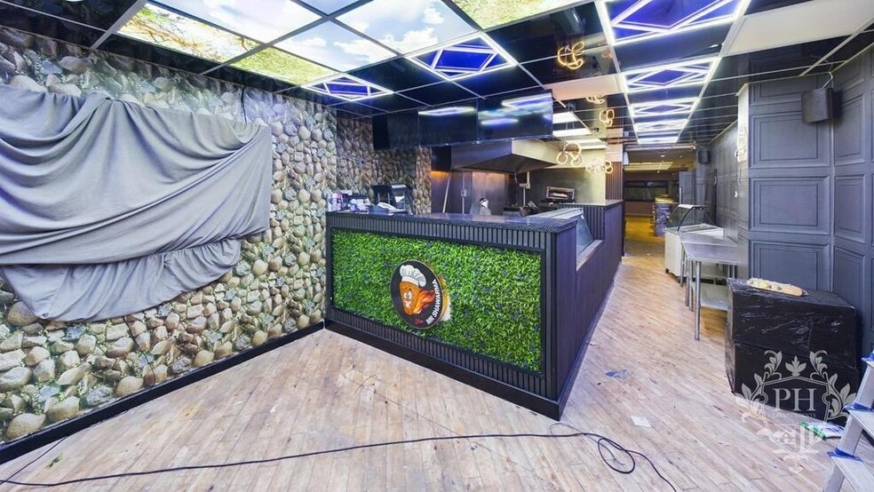 Main Shop - 4.60 x 9.67 (15'1" x 31'8") - This space appears to be a modern, newly refurbished restaurant or food takeaway setup, blending natural and contemporary design elements for a striking visual appeal.