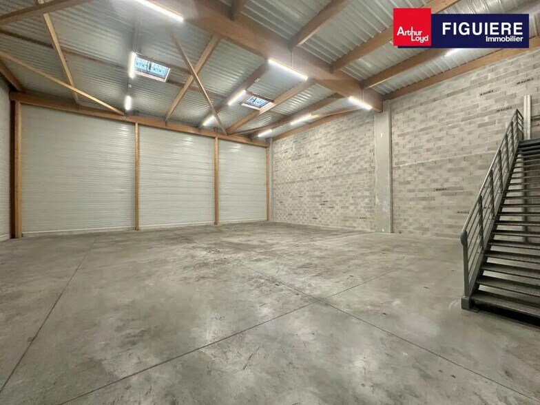 ARTHUR LOYD FIGUIERE IMMOBILIER vous propose, sur la zone de CAP HORIZON à VITROLLES, en face de l'aéroport MARSEILLE PROVENCE, dans un ensemble immobilier, une cellule de 378 m². Locaux isolés, norme RT 2012, avec environ 82 m² de bureaux climatisés en RDC+mezzanine. La partie activités profite notamment de 6,4 à 6,0 m de hauteur, d'un dalle béton lissée portant 3T/m², d'une porte sectionnelle 4 x 4,5 m H et du triphasé. Le tout dans un parc paysagé, clos et sécurisé, avec 2 places de parking privatives, accessible par tout type de porteur. Disponible à la location. Normes RT 2012 Labellisation BBCA : "Bâtiment Bas Carbone" Site clos et sécurisé Eclairage extérieur Espaces verts paysagés Voirie enrobée prévues pour des charges lourdes Bureaux : - murs périphériques placoplâtre isolés - sol carrelé - climatisation réversible en faux plafond - faux plafond 60 x 60 cm avec pavés LED intégrés - plinthes périphériques courant fort et faible - fibre optique + baie de brassage - sanitaire PMR 2 places de parking sont attribuées à ce lot Sites clos et sécurisé Surface RDC : 325,2 m² Haut. libre max. ss poutre : 6 m Résistance sol : 3 T/m² Accès bâtiment : 2 portails électriques programmés avec digicode Nbr de portes plain pied : 1 Equipements entrepôts : - sol dalle béton lissée anti-poussière - chauffage par aérothermes - menuiseries aluminium vitrage RT 2012 anti-effractions - triphasé (380V) - éclairage par réflecteurs industriels LED - trappe de désenfumage - 1 issue de secours Ossature : Bois Murs périmétriques : Double bardage Couverture : Bac acier isolé
