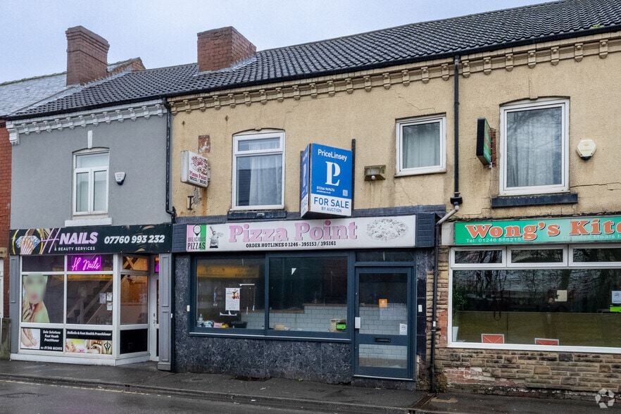 PriceLinsey are delighted to offer these commercial premises formerly operating most recently as a pizza takeaway. Located in a prominent high street position within Clay Cross situated close to a wide variety of other shops and businesses. Set over three floors offering approx. 1400 sq. ft of accommodation. The property now requires a scheme of refurbishment and modernisation throughout and offers the potential to create residential accommodation above (subject to any required necessary permissions or consents).