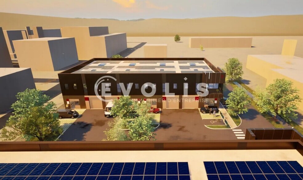We at EVOLIS are thrilled to announce the launch of the marketing phase for a brand-new business park located in Vaulx-en-Velin. This innovative project consists of four buildings under a "VEFA" (Sale in Future State of Completion) structure, offering exceptional flexibility with the possibility of dividing the spaces into 16 units. ### Features of the Business Park: - **Divisible area starting from 344 m²** (28% office space and 72% activity space) - **52 private parking spaces + 16 visitor spaces** - **12-meter truck access** to facilitate deliveries - **Glass doors for the activity hall/units**, providing excellent natural light and optimal visibility This business park is thoughtfully designed to meet the needs of modern businesses, combining functionality and comfort. Whether you're looking for office space or a facility for your operations, this project can adapt to your requirements. Don't miss this unique opportunity to establish your business in a dynamic and rapidly growing environment. For more information or to reserve your unit, feel free to contact us. --- ### Additional Features: - Electric gate with timer; pedestrian access via a side gate - Heavy-duty roadways for delivery access - Light-duty roadways for passenger vehicles - Pre-installed conduits for future electric vehicle charging stations - Landscaped green spaces, curbs, sidewalks - Outdoor lighting - Double-skin metal façade with metal cladding, sandwich panels, and glass (ground floor glass is break-in resistant) - Ceiling height: 7.8 meters on average; 4 meters under mezzanine - Cool Roof waterproofing - 36 kVA "blue rate" per unit (upgradable) - Industrial quartz flooring (3T/m² load capacity) - Steel deck roofing - LED lighting - Sectional doors measuring 3.5m x 3.5m - Electric air heater - Destratifier - 350 kg/m² load capacity on the first floor - Carpet tiles or PVC flooring on the first floor - Suspended ceiling - LED light fixtures - Perimeter baseboards - 2 restrooms, including 1 ADA-compliant on the ground floor - Air-to-air heat pump for first-floor offices --- ### Customizable Options: - High and low current cabling - Modular partitions (30% to 100% glass) - Ground floor layout customization - Locker rooms, cafeteria, social spaces **Ground Floor Area:** 4,038 m² --- ### Location/Transportation: - Bus Lines: 52, C15 --- ### Key Dates and Costs: - **Delivery of the first building:** June 2026 - **ASL charges:** €3/m² (excl. VAT)