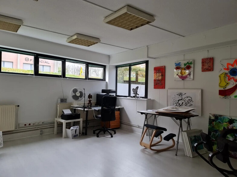 Une entrée avec espace accueil, une cuisine séparée, un couloir distribuant quatre bureaux indépendants. Des places de parking communs sont à disposition autour de l’immeuble. L’immeuble bien entretenu a été construit en 1993.