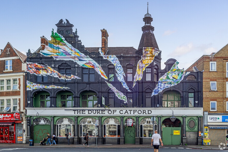The property comprises a substantial three storey mid terrace period building with feature arches to first floor and character facias above. Eye-catching painted façade with large feature windows to the ground floor. Coach archway to one side with access to extensive courtyard beer garden and flat roofed outbuildings at the rear. The Ninth Life (ex Black Horse & Harrow) is situated in Catford, south-east London. Catford is approximately 4 miles south-east of Peckham, 5 miles from Brixton and 8 miles south-east of central London in the London Borough of Lewisham. Catford/Catford Bridge Train Stations (zone 3) are within 5 minutes walk of the premises, which is prominently located on the A205 Rushey Green Road (South Circular), opposite The Broadway Theatre and Lewisham Town Hall, in an area of high local footfall with neighbouring retailers including Tesco, Iceland, Lidl, Superdrug, Costa Coffee, McDonald's, KFC and Greggs.