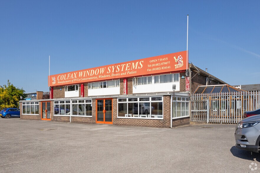The premises comprises a regular shaped site providing roadside frontage and extending back to a good depth, accessed directly off both Leads Road and Rotterdam Road. Calculated site area of c.1.2 acres (0.49 hectares). The unit is constructed of reinforced concrete frame with a uniform eaves height of 5 m (16’ 3”), with traditional brick infill elevations under a shallow pitched roof. The front gable of the building at ground floor level provides a showroom. To the first floor front of the building (facing Leads Road) is private and open plan office accommodation with WC and file stores off. Ancillary offices and staff facilities are provided to the workshop in addition to a mezzanine storage area. The site is located on the north side of Leads Road occupying a prominent position at its junction with Rotterdam Road on the eastern periphery of Sutton Fields Industrial Estate approximately 4 miles north east of Hull city centre. The immediate area extending to Stoneferry Road to the west is a recognised trade sales location with general industrial uses beyond in addition to a residential presence.