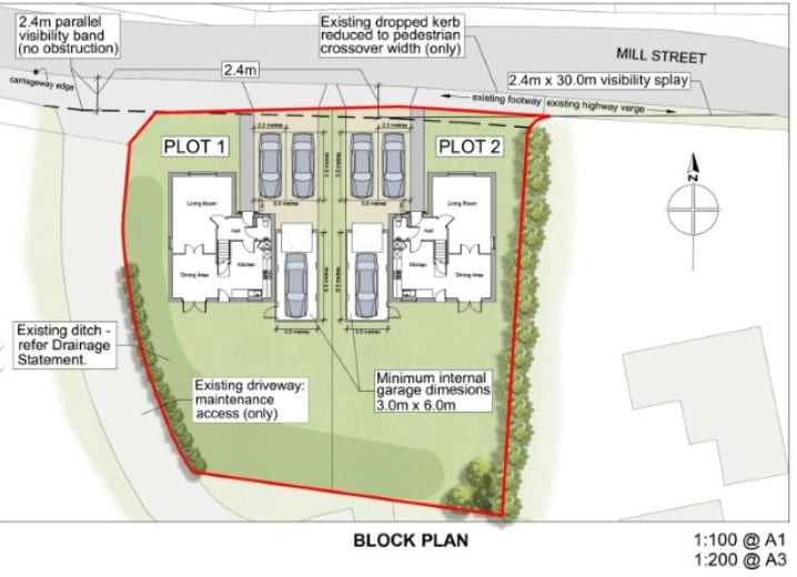 An opportunity to purchase a 0.19 acre stms parcel of land with full planning permission to build two new four bedroom detached houses, each with a garage, off road parking and garden.