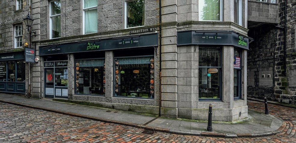 The property occupies a prominent corner site at the junction of Correction Wynd and St Nicholas Street only a few yards from Union Street Aberdeen’s principle shopping thoroughfare.