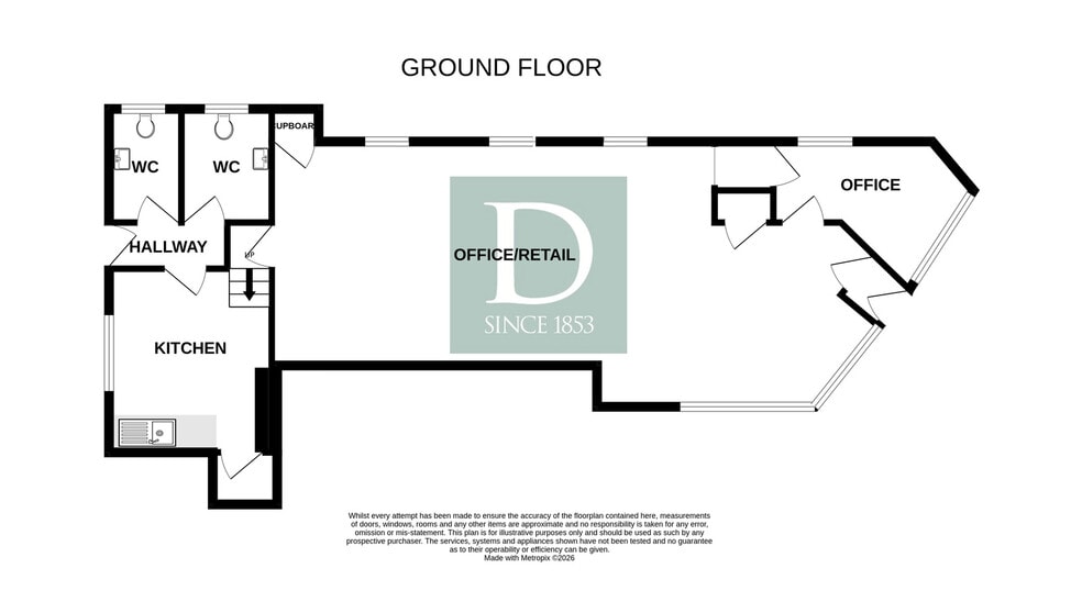 2 Church Street comprises a ground floor retail/office premises, which in recent years has been used as a financial advisors office. On entering, a small lobby opens out into the main retail/office space which has a glazed frontage onto Church Street, providing an excellent display opportunity. On the right, a door provides access into a separate managers office/store. To the rear of the main office space is a staff kitchen/store room, rear hallway with fire exit and two WC’s. The property could suit both professional office/ business users or could be turned into a retail/sales space.