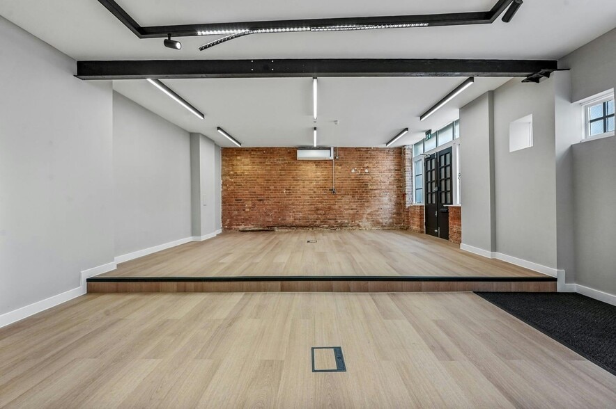 The ground floor boasts two welcoming entrances from Brownlow Mews, featuring double doors and large Crittall external windows that highlight the building’s historic charm. Delivered to CAT A specification, this space offers excellent potential for office use. On the first floor, natural light floods the area, with the atrium serving as a central feature. Skylights amplify the brightness, creating a vibrant atmosphere conducive to productivity.