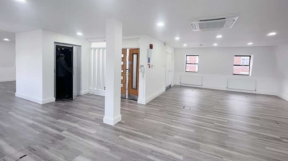 The offices benefit from a recent refurbishment to the entrance hall with lift access to the upper floors. The second floor provides open plan offices, exposed concrete ceilings, meeting room and kitchenette. The third-floor office also recently refurbished benefits from air-conditioning, new kitchenette, plaster ceilings and perimeter trunking.