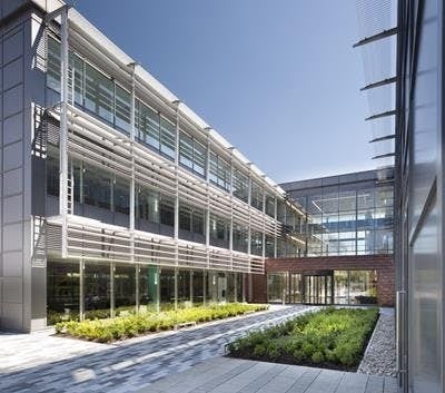 This modern, sensitively designed building has plenty of outside space, including a completely remodelled entrance and atrium, to give a sense of community. Transport facilities are particularly good, with ample parking and bicycle racks.