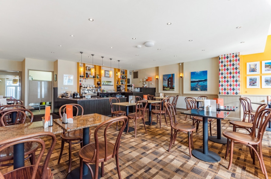 The freehold of this café and owners accommodation is available for the guide price of £450,000.