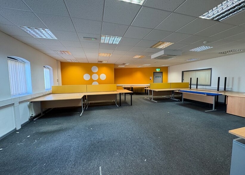 This spacious and flexible unit has been finished to a good standard to include painted walls, carpeted floors, suspended ceilings with integrated fluorescent strip lighting, double glazed windows, gas heating, perimeter trunking, kitchens, male and female toilets and air conditioning.