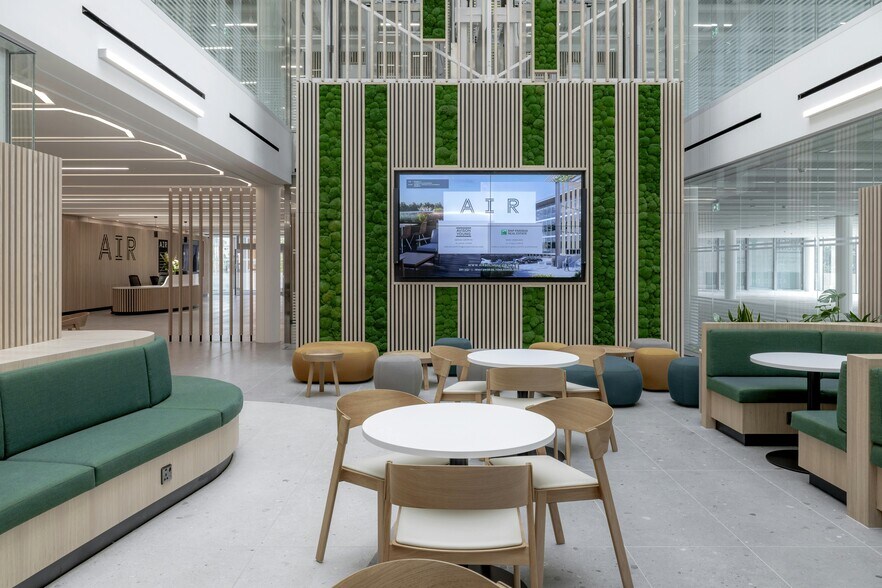 AIR offers a rare opportunity to occupy an exceptional landmark workspace within the heart of Solihull town centre. When originally constructed, the building was awarded the British Council for Offices’ Best Commercial Workspace, but has recently undergone a comprehensive refurbishment to fully update the building’s presentation and specification. The building has been enhanced to improve its appeal to modern occupiers through the creation of a new triple-height external canopy, business lounge/coffee bar, fitness studio, cycle hub, high quality shower and changing facilities and dual roof terraces with far reaching views over Tudor Grange Park. Sustainability is at the heart of the building's improved improved specification with the intention of ensuring low running costs. The building has been WiredScore accredited with a Platinum rating and will have multiple rapid EV chargers installed.