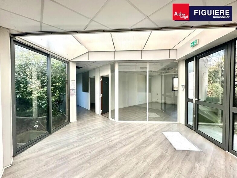ARTHUR LOYD FIGUIERE vous propose un bâtiment indépendant à usage de bureaux et activités de 585 m² de plain pied, sur un terrain indépendant clôturé de 1800 m². Locaux en dur, isolés, climatisés, câblés et modulables. Cette parcelle d'environ 1 800 m² dispose de deux portails d'accès et de 20 places de stationnement environ. Proche des grands axes routiers et des arrêts de bus. Disponible immédiatement à la location. Accès par portes vitrées Patio central Bureaux et espace à usage mixte : - sol stratifié imitation parquet/dalle béton lissée finition quartz antistatique - faux plafond 60x60 cm sur ossature métallique à 2,5 m - éclairage blocs tubes fluorescents - climatisation gainable - menuiseries alu double vitrage - plinthes courant fort et faible - fibre optique + baie de brassage - sanitaire H/D avec ballon d'eau chaude - 1 douche - 1 cuisine aménagée Une vingtaine de places places de parking 2 portails motorisés Eclairage extérieur Site clos et sécurisé Immeuble indépendant Surface RDC : 585 m² Surface terrain : 1800 Haut. libre min. ss poutre : 2,5 m Haut. libre max. ss poutre : 3,5 m Nbr de portes plain pied : 2 Ossature : Béton Murs périmétriques : Béton