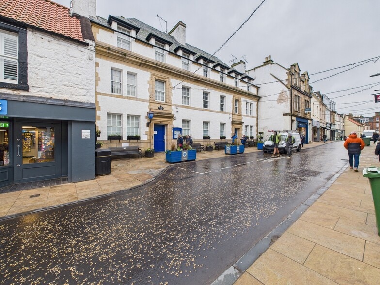 The property comprises an attractive three-storey, Category B listed terraced building of traditional stone construction beneath a pitched slate roof, with a single-storey rear extension. The property benefits from two separate entrances directly from North Berwick High Street, together with two additional access points to the rear via the private car park. The car park is accessed from Forth Street Lane and provides secure parking for up to six vehicles. Internally, the accommodation is arranged over ground, first and second floors, predominantly comprising cellular rooms served by two staircases. Kitchen and WC facilities are provided on each level, with shower facilities located on both the first and second floors. To the east side of the first and second floors are two self-contained residential flat dwellings, which can be accessed either internally or independently via the rear stairwell from the car park.