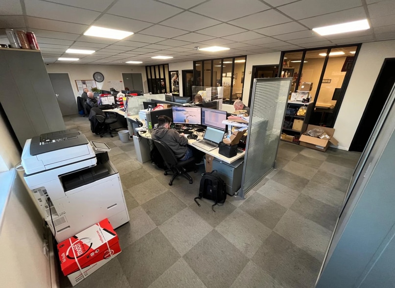 The office accommodation is arranged over two levels and have recently been refurbished to a high standard. The offices are laid out to provide open plan and cellular office space with separate kitchen, break room and WC facilities. The offices are fitted to include painted and plastered walls, carpeted flooring, suspended ceilings, L1 Fire Detection System, Grade 3 Intruder Alarm, CCTV throughout and high-speed fibre broadband with network cabling. The workshop benefits from 3 phase power supply and 3 shutter doors leading to the private yard. Externally the site is fenced and gated, with a secure yard laid in tarmac with 14 parking spaces, EV charging points and CCTV.