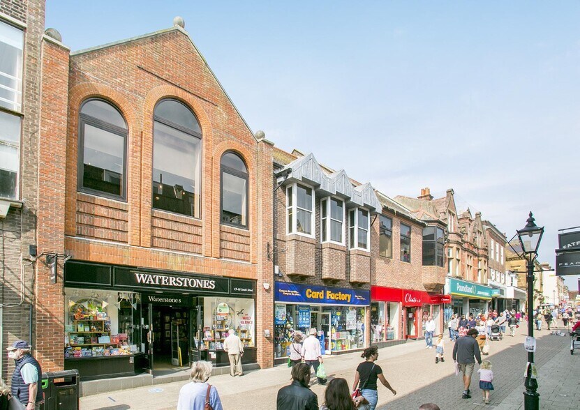 The property is well situated within the heart of the town centre on the west side of the pedestrianised South Street, which forms part of the towns principle shopping area Occupiers close by include Mountain Warehouse & Fat Face (opposite), Waterstones, Poundland, WHSmith, Vision Express, JoJo Maman Bébé, Holland & Barrett, Greggs, and Crew Clothing amongst many others Waitrose Supermarket is located within a short distance