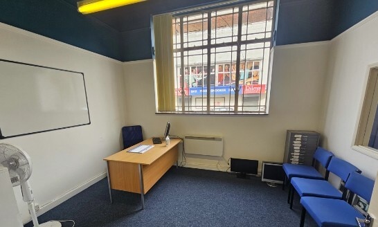 The premises comprise a ground floor office/retail unit with a prominent corner frontage in the center of Gillingham. The current layout comprises a ground floor retail/office area with a partitioned private office and store to the rear. There are also 2 WCs (one not in use) and kitchen. The property also benefits from a secure basement store.