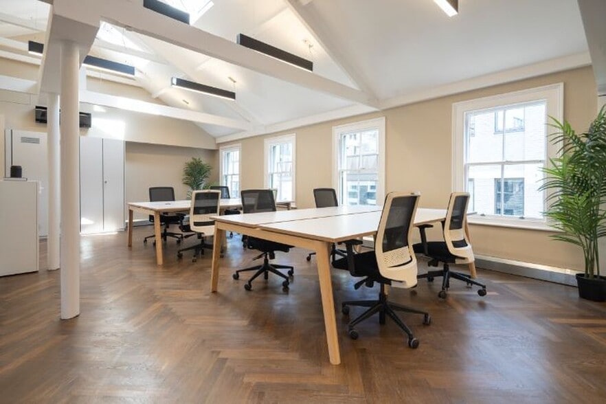 The available unit comprises two fully fitted office floors, each thoughtfully designed for modern working. Both floors feature two meeting rooms, call pods, and kitchenettes, alongside a welcoming reception area. High-quality finishes, air conditioning, and fibre connectivity ensure a professional yet stylish workspace, ideal for creative and corporate occupiers.