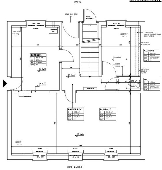 A louer un local type bureau d'une surface totale de 75 m² sur deux niveaux rdc et R+1 dans un immeuble sécurisé en bon état général disposant: - Au RDC: de 2 bureaux, un palier, un WC et une cuisine -Au R+1: de 2 bureaux et un palier accessible via l'escalier du RDC Idéal pour : professions libérales, association et autres activités de bureaux. Métro ligne 13 porte de Paris à 300 mètres et Tramway à proximité Disponibilité immédiate