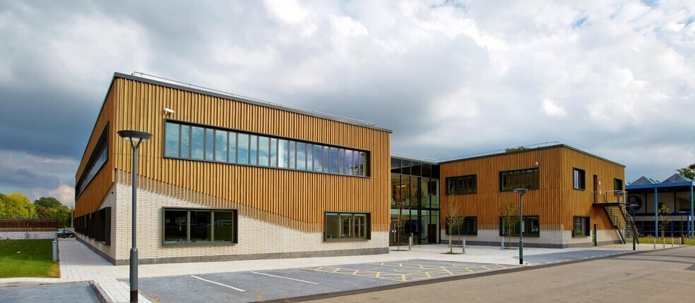 The property provides a bespoke two storey building, with a central core and two off set flanking office blocks and includes hard and soft landscaping, car parking, cycle stores and a storage building away from the main site. The building was developed in 2014, with a steel frame construction clad externally in Sweet Chestnut vertical boarding to the two flanking office blocks, with fully glazed curtain walling to the front and rear of the central core. The offices are predominantly open plan either side of the central core where the service accommodation (reception, WCs, kitchen/eating areas, staircase and lift) is located. There is a large conference room to the front left hand office block to the ground floor, with smaller meeting rooms to both office blocks to the ground and first floors. Externally, the grounds are typical with hard and soft landscaping, with a small visitor car park to the front elevation and a large staff car park to the rear elevation. This is further complemented by extensive on-site parking within the vicinity.