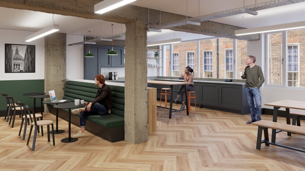 Uniquely situated, Sutton Yard comprises a beautifully refurbished network of buildings nestled between Dallington Street and Northburgh Street. With public access to the main courtyard set within a tall, narrow void between two buildings facing onto Goswell Road, the scheme carries a certain charm wholly befitting of the Clerkenwell area. The unusual entrance combined with the industrial architectural aesthetic which runs through the scheme makes for a truly unique and impressive setting which continues all the way through to the open plan, industrial style floorspaces.