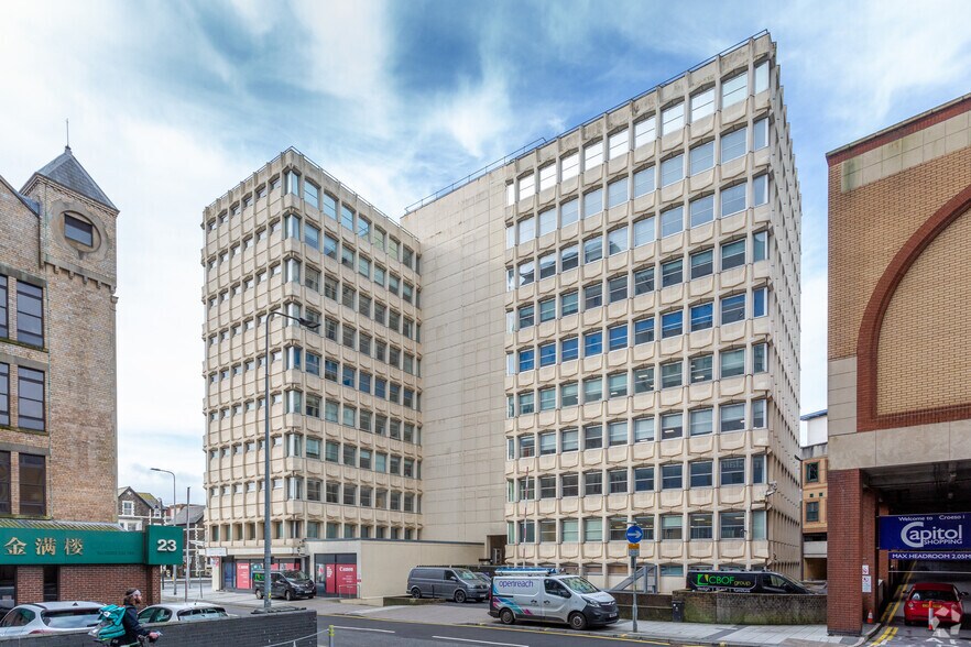 Positioned on the ground floor of Churchill House, this modern commercial space offers a prime opportunity in the heart of Cardiff city centre. The property is set to undergo extensive renovation by the new landlords, including the creation of a contemporary business lounge and a newly configured retail unit. Located at the eastern end of Queen Street and adjacent to the Capitol Centre, the site benefits from exceptional visibility and connectivity within one of Cardiff’s busiest commercial corridors.