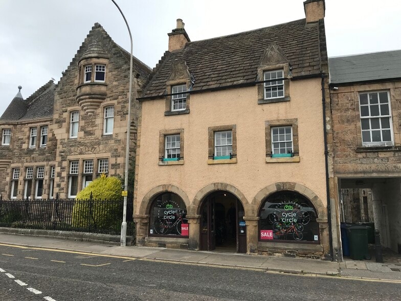 The subjects are prominently located at the eastern end of Elgin High Street where it connects to South College Street which in turn connects to Greyfriars Street. he building which dates back to 1694 is Category “A” Listed and comprises ornate stonework and graded stone roof detailing. The shop front comprises three round headed arches set on squat pillars. The central arch provides glazed side lights on either side of double timber part glazed entrance doors. The arches on either side of the entrance provide large display windows.