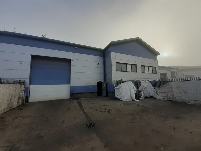 The property comprises a refurbished end-terrace industrial building of steel portal frame construction with external elevations of metal cladding and brickwork underneath a pitched roof. An external yard is provided with gated entrance, steel palisade fencing.