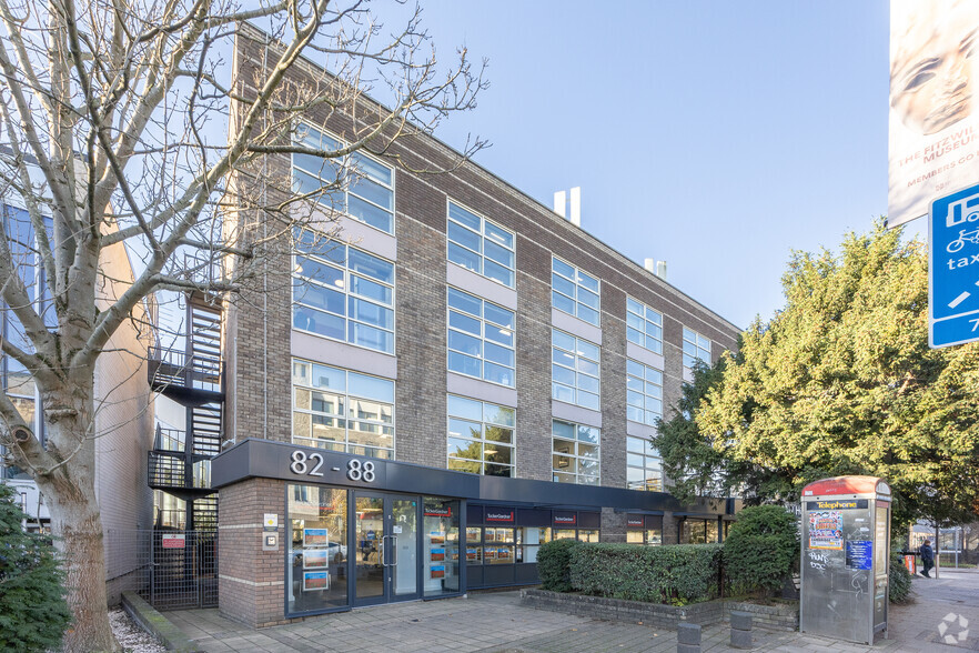 The office suite is located on the ground floor at the front of the property, offering prominent views of Hills Road and Bateman Street. It has recently undergone a comprehensive refurbishment, now featuring raised access flooring with new carpeting, suspended ceilings with integrated LED lighting, and a modern heating and cooling system. Occupants benefit from shared male and female WCs, as well as shower facilities within the building. The suite includes one allocated secure parking space and access to secure cycle storage. Additional car parking spaces are available at an extra cost.