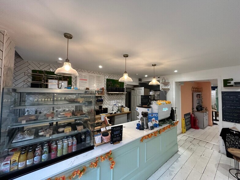 The property has an open plan seating area fitted with a coffee bar, further seating to the rear, a kitchenette and customer W.C. There is a shared staff W.C. with Hollis Morgan and a further storeroom, located on the first floor. The property carries a mix of wooden and vinyl flooring, painted plastered ceilings and walls and has been fitted with a mix of pendant and recessed spotlighting as well as air-conditioning. We understand there has formerly been commercial extraction in place.