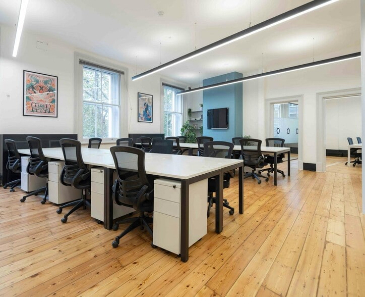 Old converted warehouse style building offering self contained 1st floor to accommodate 34 desks with large private kitchen/breakout area and an 8-person meeting room. The space has lots of character featuring an original fireplace and there is lots of natural daylight. Available on a 3 year lease.