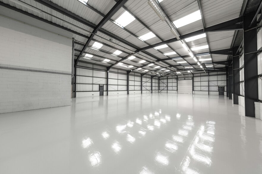 A modern steel portal frame industrial/warehouse unit benefiting from a clear open plan warehouse and fitted ancillary office accommodation to the first floor. 8 allocated car parking spaces are situated to the front of the property.