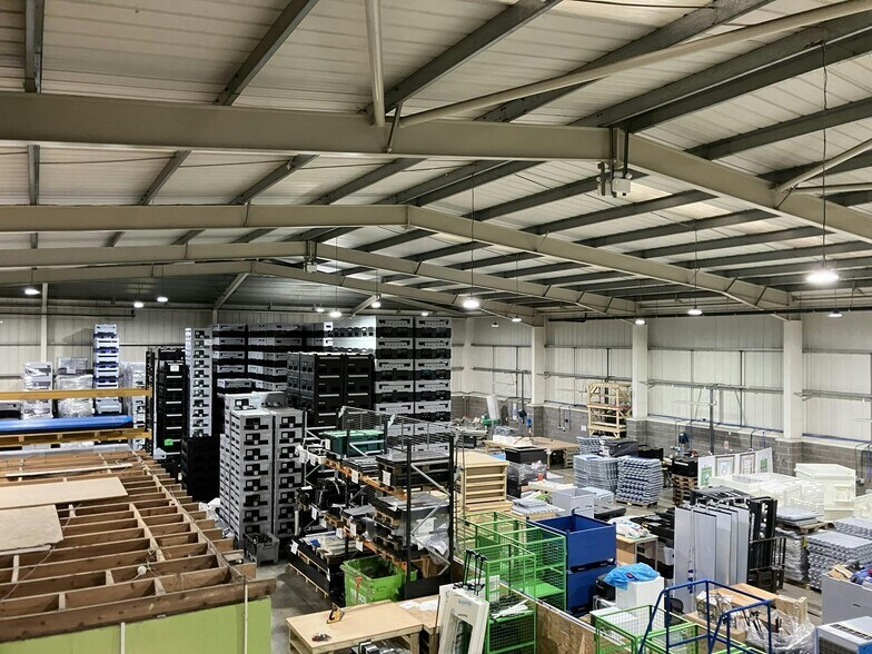 The property comprises a single bay, detached warehouse of steel frame construction with profile metal clad roof incorporating translucent roof lights. The walls are brick/block with concrete floor. The property is lit via halogen box lights and is unheated. The warehouse benefits from two electric roller shutter doors and is built to an eaves height of approximately 6 metres and to an apex of approximately 7.9 metres. There are two storey integral offices with carpeted floors, painted plaster walls, fluorescent strip lighting and central heating served radiators. Externally, the property benefits from a dedicated yard and in addition a car park with 18 delineated spaces on a tarmac surface.