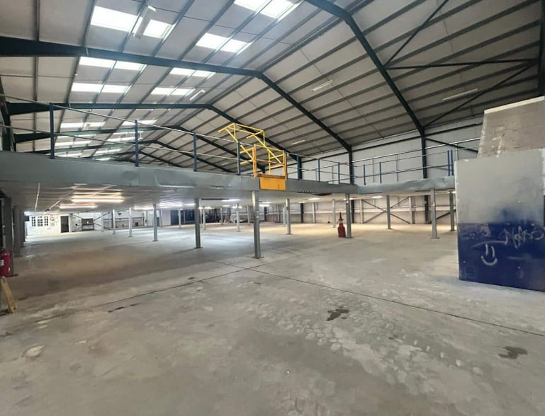The property consists of a steel portal frame building with block walls to approximately 1m with insulated steel profile sheeting above, the roof is constructed from insulated steel profile sheeting, with new LED lighting. The unit has a concrete floor and benefits from a roller shutter door and pedestrian door at each end of the building. There is also a mezzanine floor extending to approximately 7,000 sq ft. The unit includes internal office accommodation split across two floors and further office space within a mobile office situated on front of the property.