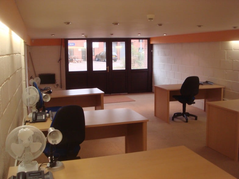 The property is a smartly converted warehouse unit providing office accommodation over ground and first floors. An insulated roof was installed some years ago. The ground floor has a personnel entrance door to the right side which gives access to a hallway to the rear of which houses a kitchen and WC. The main office is open plan and has full height glazing set behind a roller shutter door and as such provides a working environment with good natural light. To the rear of the main office are stairs to the first-floor office, which has a window to the rear. The office has the following specification: • Carpeted flooring throughout • Plasterboard ceiling with diffused lighting • Air Conditioning • Electric heating Externally there is parking for 4 cars double parked immediately at the front of the building and space for a further 3-4 cars on the gravelled parking area.