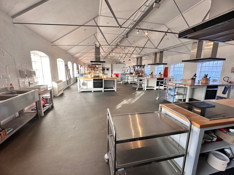 The subject property is situated in a predominantly residential area c.1.5km south west of Warminster town centre. The property comprise part of the Old Silk Works complex which has undergone division to form a range of light industrial and commercial uses. The unit is accessed from Factory Lane . The Property comprises the first floor of a period two storey commercial warehouse and office that has been converted to accommodate an established Cookery School. The first floor is laid out as The Cooking School benefiting from individual food prep stations, passenger lift, break-out areas and ancillary offices.