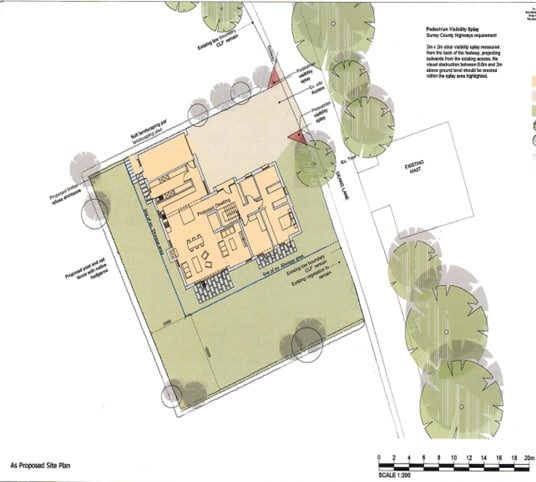 Planning consent was granted on 11 July 2024 for change of use of land from Class B8 (open storage and parking) to Class C3 (residential) and erection of detached dwelling with associated parking, entrance gates and amenity space under ref: TA/2024/329 (Tandridge District Council).
