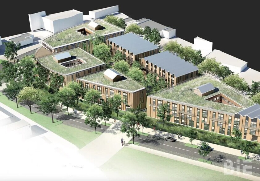 Le programme de la GOUTTE D'EAU située à Bruges, au pied de la sortie n°6, s'intègre à l'opération de réaménagement urbain du quartier de TERREFORT. Proche du centre ville de Bruges, de commerces et services de proximité, BIE vous propose à la vente 4 700 m² de bureaux divisibles à partir de 74 m². Ce programme offre des prestations haut de gamme et de nombreuses places de parkings. Bâtiment en R+2 classé code du Travail Bureaux livrés terminés non cloisonnés Labellisation Breeam Very Good, démarche E+ C- Panneaux solaires en toiture Jardin partagé et espaces en pleine terre sur une surface de 4 000 m2 Toiture et terrasses végétalisées Plateaux de 620 m2 environ du RDC au R+2 (Bâtiment BS) Faux- plafonds acoustique en dalles Climatisation réversible (type VRV) en faux plafond - Ventilation double flux Système de type GTB 1 ascenseur Dalles de moquette 500 x 500 pour les bureaux Hauteur libre en étage courant 2m70 Trame de façade 1m20 - Façade porteuse en béton et menuiserie aluminium 23 places de parking, possibilité d'en avoir plus - Ratio : 1 place / 50 m2 Bornes de recharge pour véhicules et vélos électriques Parkings bâtiment CN et BS : aériens à 8 000 euros/u HT Parkings bâtiment D : 36 pkg sous - sols à 20 000 euros HT / 13 pkg couverts à 10 000 euros HT et 8 pkg aériens à 8 000 euros HT Surface RDC : 1178,8 m² Surface terrain : 0 4 699 m² divisibles à partir de 74 m² Situation/Transports : Sortie rocade Sortie 6 Bus Gare de Bruges (29-72) SNCF Bruges Tramway Gare de Bruges (Ligne C)