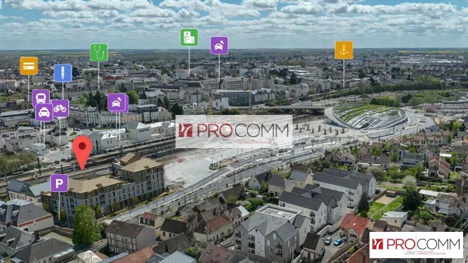 A VENDRE - CHARTRES Une cellule professionnelle de plain-pied de 152 m², brute d'aménagement, fluides en attente, vitrines posées, terrasse.