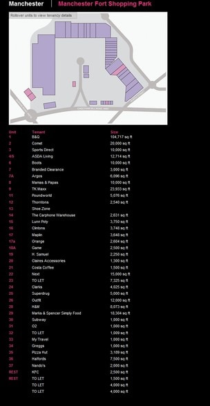 SELECT TENANTS AT MANCHESTER FORT SHOPPING PARK