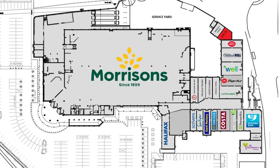 - A purpose built foodstore totalling 80,212 sq ft (7,452 sqm) GIA with a surface level car park (500 spaces / parking ratio of 1:160 sq ft)