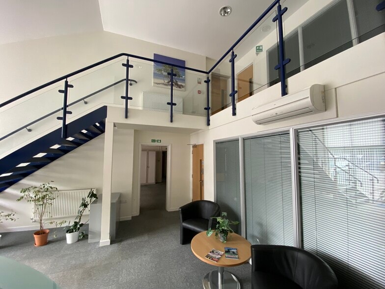 The subject property comprises two terraced industrial units with profile sheet clad elevations and metal frame window units. The property was originally constructed for use as two separate industrial units and was subsequently interlinked and converted to provide office accommodation over ground floor with the addition of a mezzanine/first floor which has also been fitted as office accommodation. Access to the building is by way of a pedestrian door to the front elevation which leads into a reception area. There is also a pedestrian fire exit to the rear of the building as well as further fire exits to the front elevation. The ground floor provides reception area, various offices and training rooms, male and female WCs on both sides of the building, kitchen facilities, plant room and a disabled lift. There are three staircases across the two buildings providing access to the mezzanine/ first floor accommodation with the first floor providing various office and training rooms and kitchen facilities. The roof is fitted with solar PV panels. The property could potentially be put back into two separate units and could be utilised for light industrial use again if the offices were stripped out.